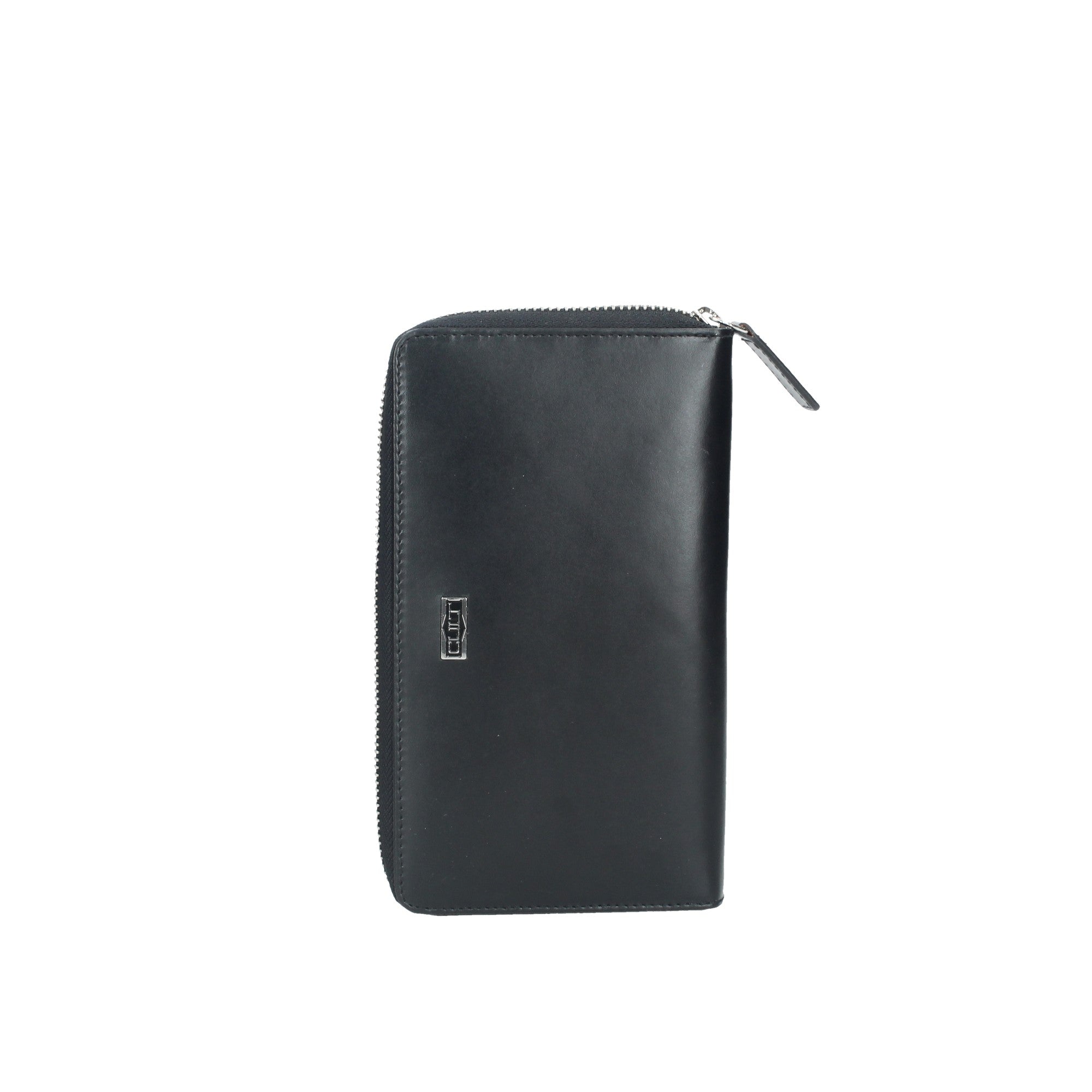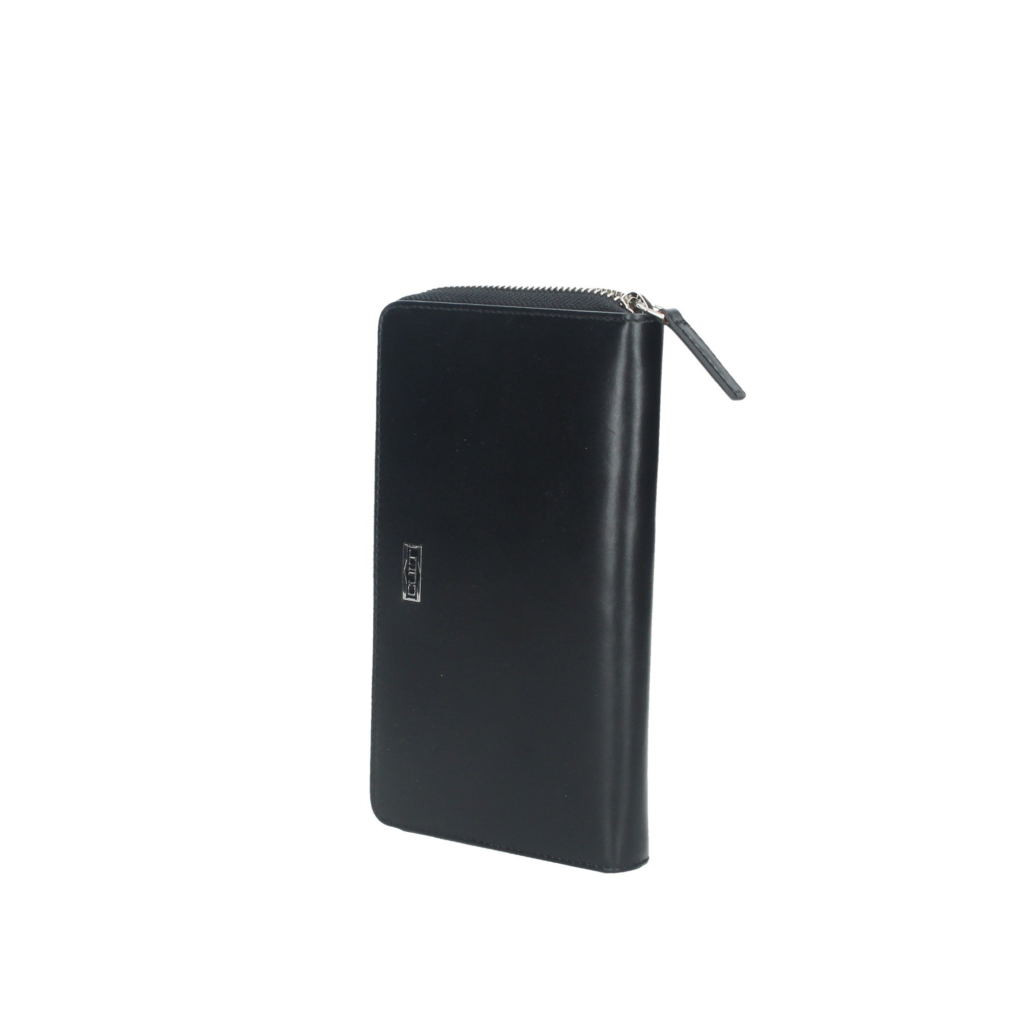 Portafoglio firmato Cult realizzato in morbida ecopelle effetto cracklé nera è impreziosito da logo lettering nella parte frontale. Al suo interno sono presenti due scomparti per organizzare banconote, tessere e monete. La chiusura è tramite zip metallica. Dimensioni 19.5x10x2,5