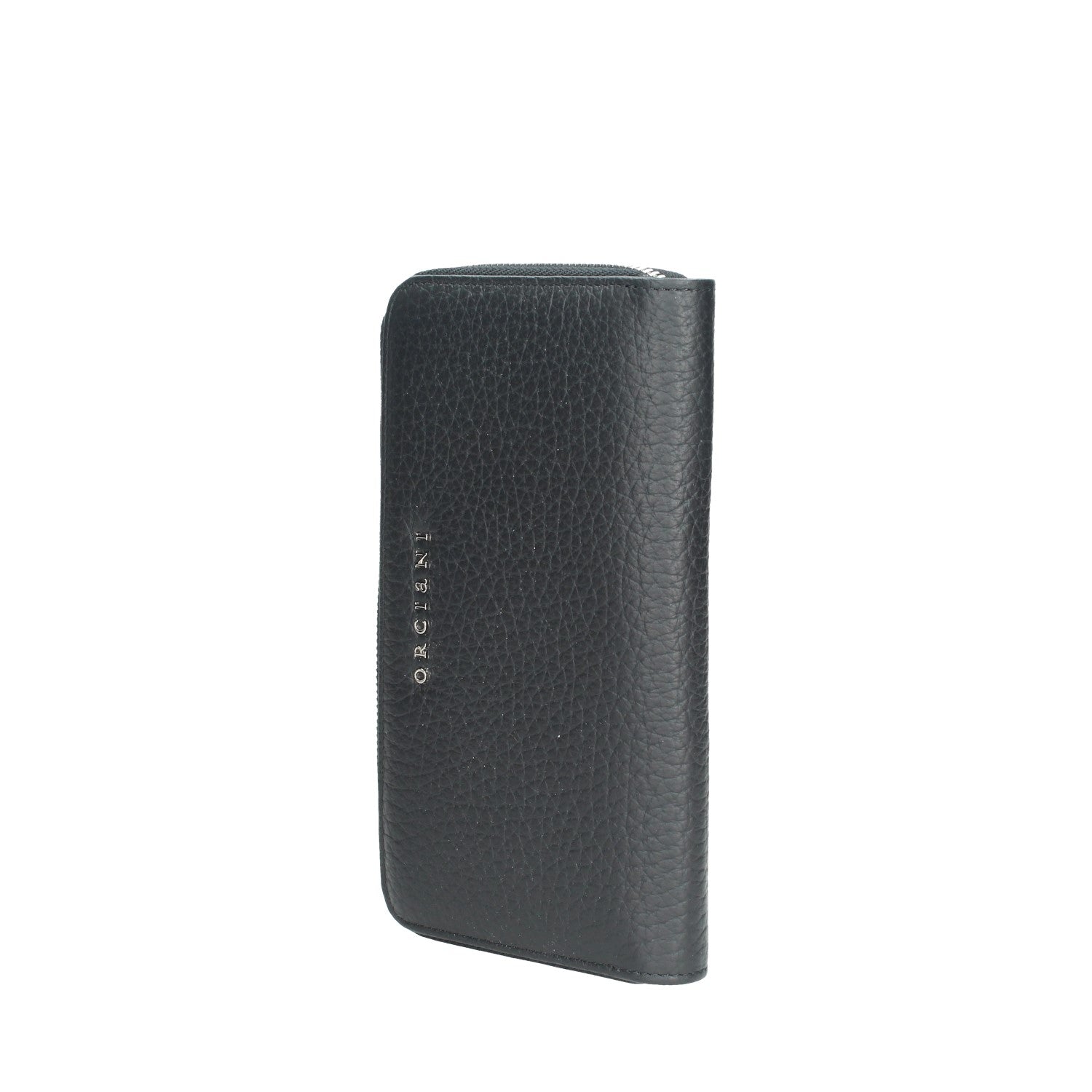 Tasche: due scomparti interni per banconote, otto scomparti porta carte, porta monete centrale con zip