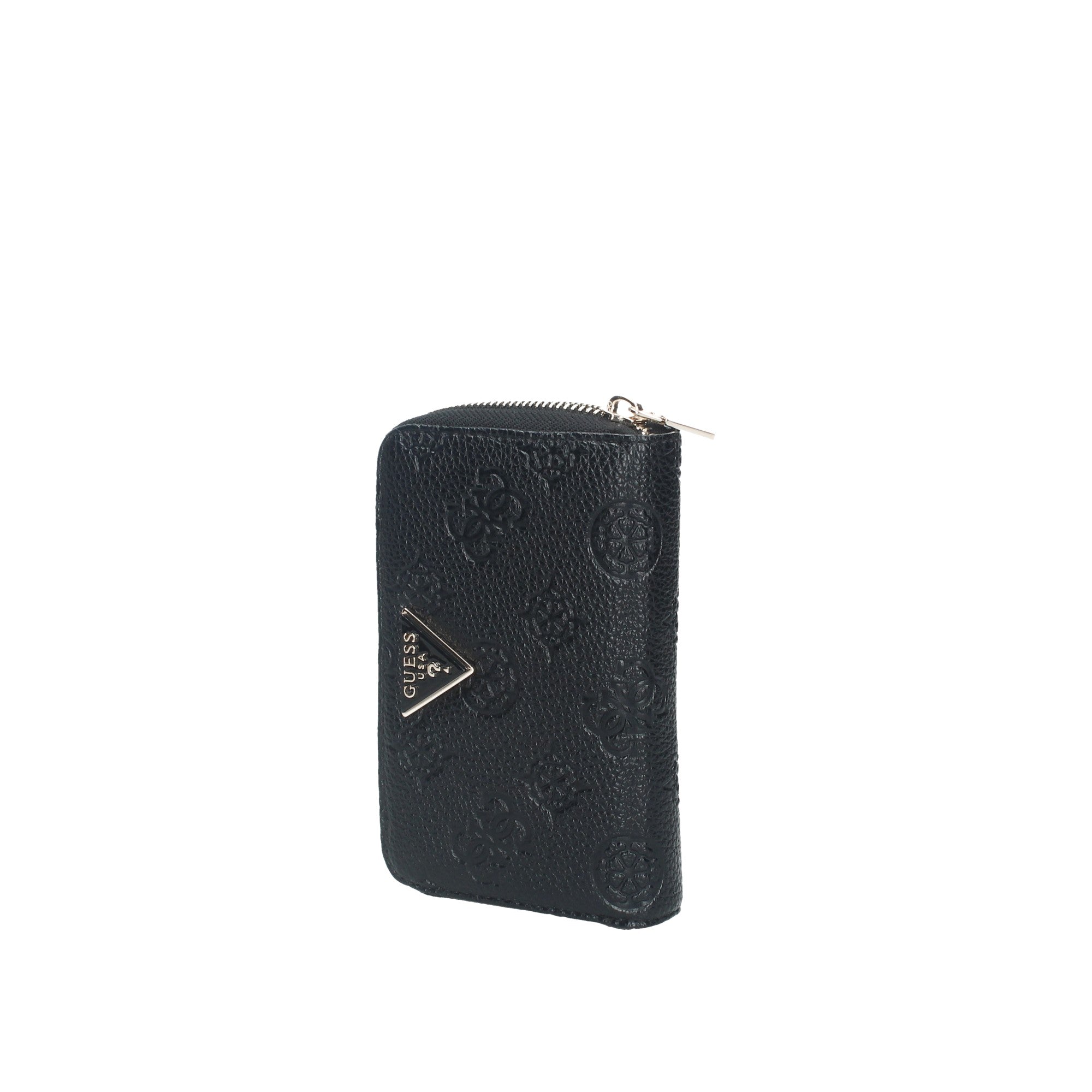 Portafoglio donna Guess Cresidia SLG zip around. Realizzato in ecopelle martellata multilogo. Un comparto con chiusura a zip. Logo metallico a triangolo, in applicazione sul lato frontale. Slots per carte di credito. Portamonete interno con chiusura a zip. Dimensioni: lunghezza: 14,5 cm. profondità: 2,5 cm. altezza: 10,0 cm. Galvaniche color oro.