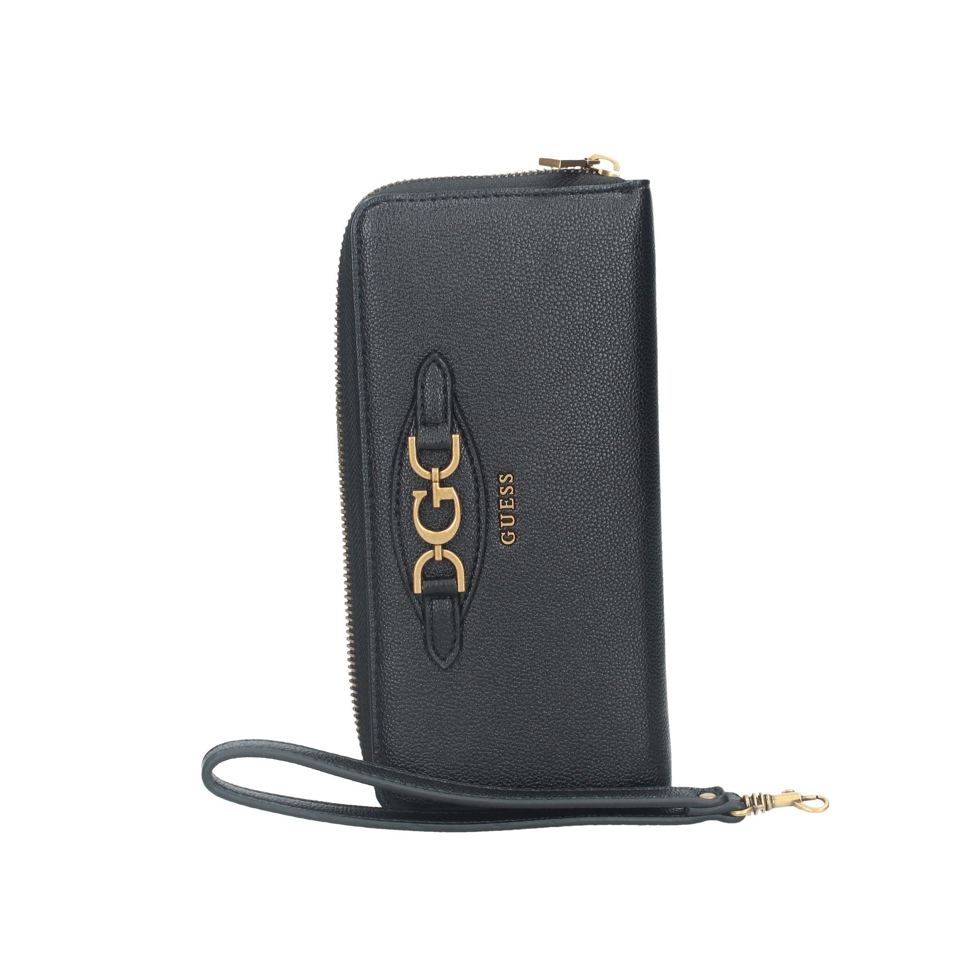 Portafoglio elegante e con logo Guess metallizzato - Chiusura con zip metallizzata - Tasca posteriore con zip - Tasche multiple per carte e documenti - Coulisse decorativa rimovibile - Tasca per monete
