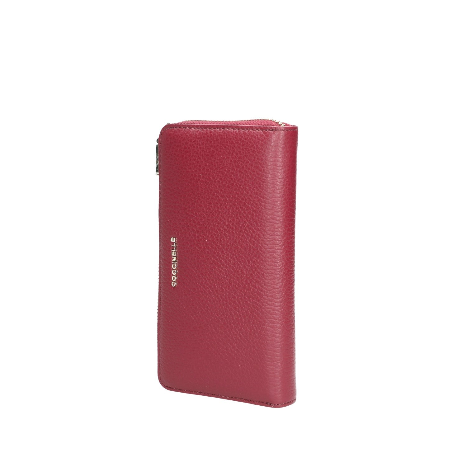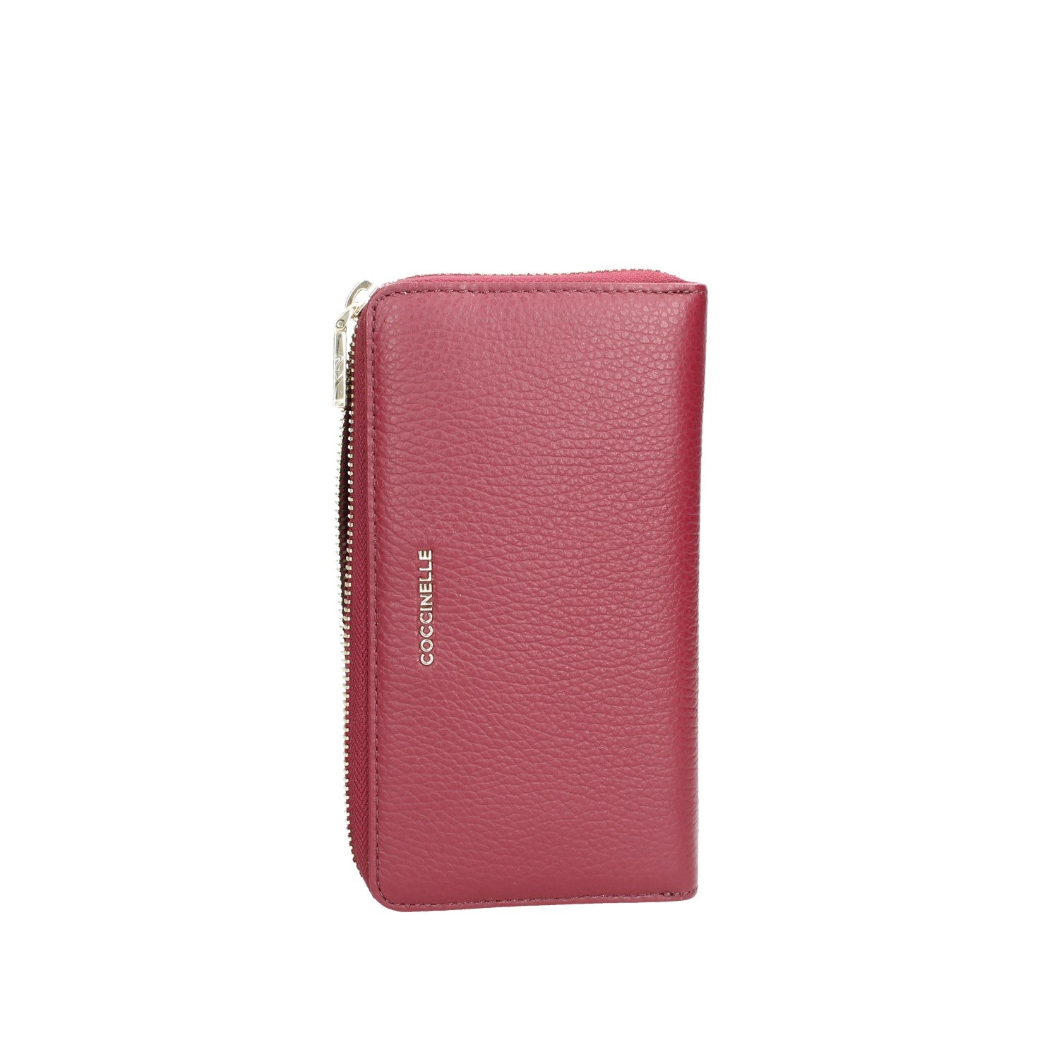 Portafoglio donna in pelle granulata , chiusura con zip , finiture in metallo oro lucido