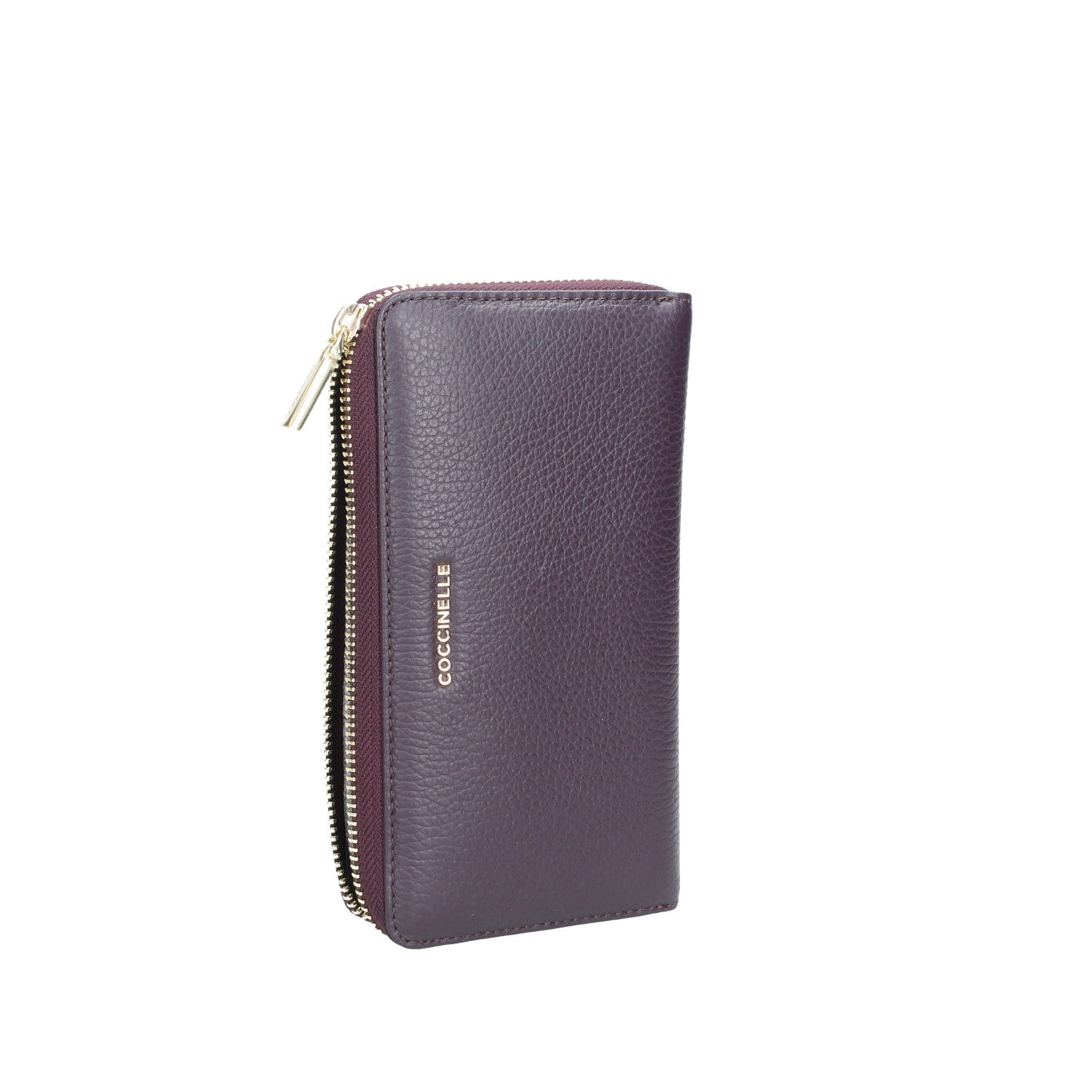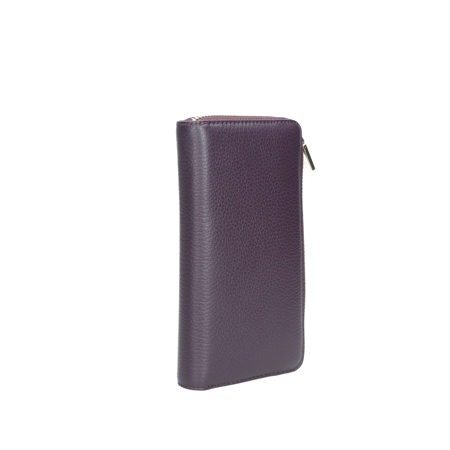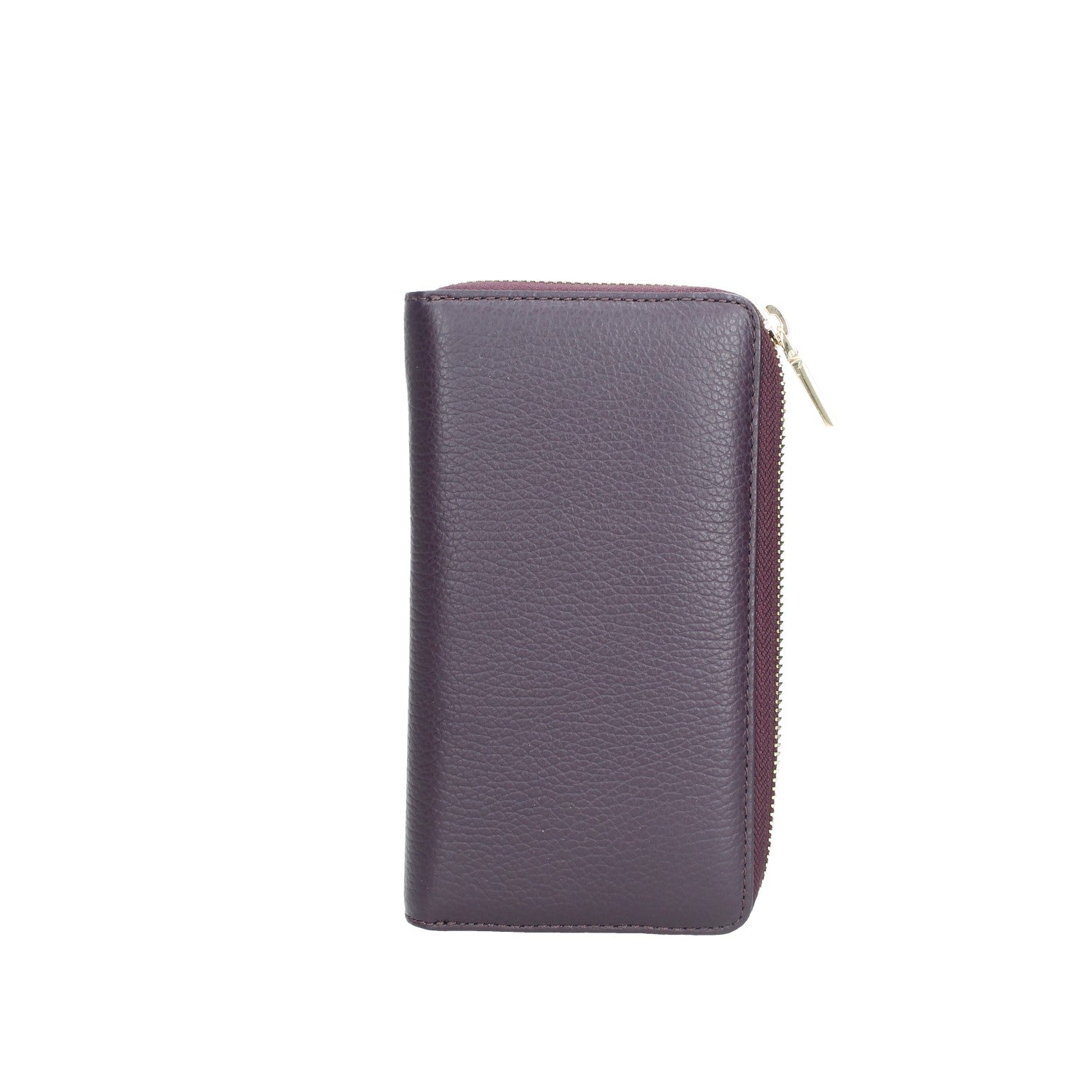 Portafoglio donna in pelle granulata , chiusura con zip , finiture in metallo oro lucido