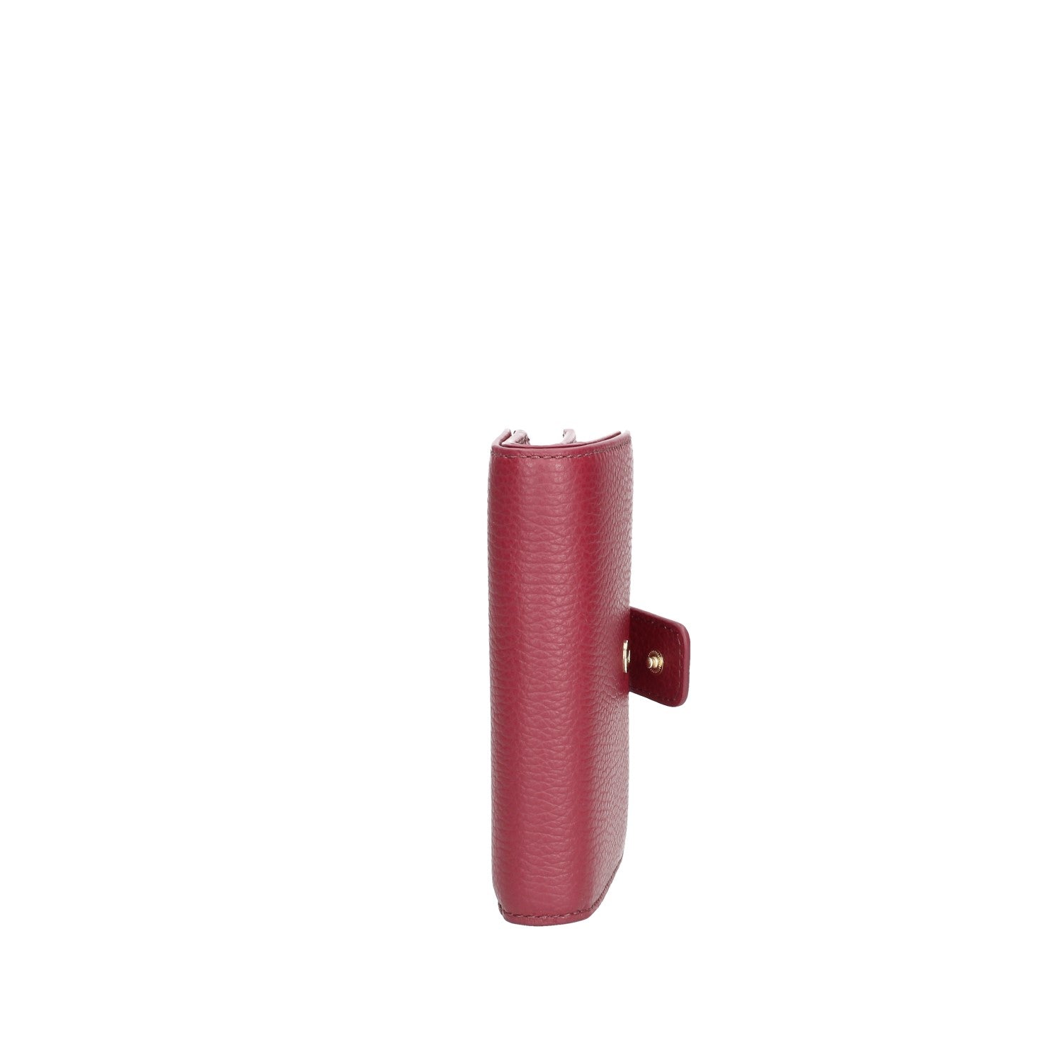 Portafoglio donna in pelle di vacchetta grana linea Metallic Soft, chiusura con bottone a pressione ,metalleria oro lucido