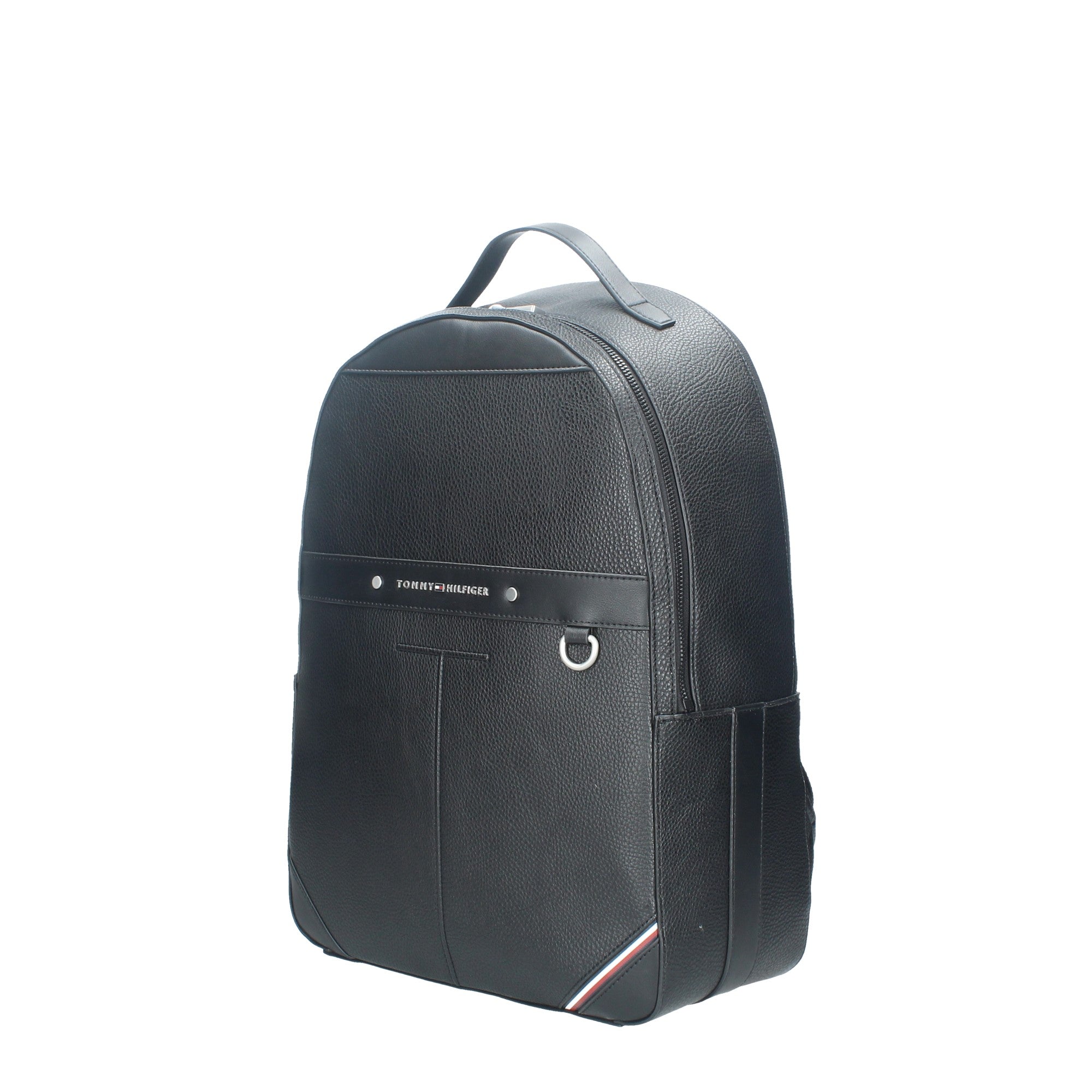 Zaino in similpelle finitura martellata, chiusura con zip, manico superiore, spallacci imbottiti regolabili, tasca a fessura interna, tasca con zip interna. Lettering logo in metallo sul davanti. Dimensioni: cm 31x16x44.