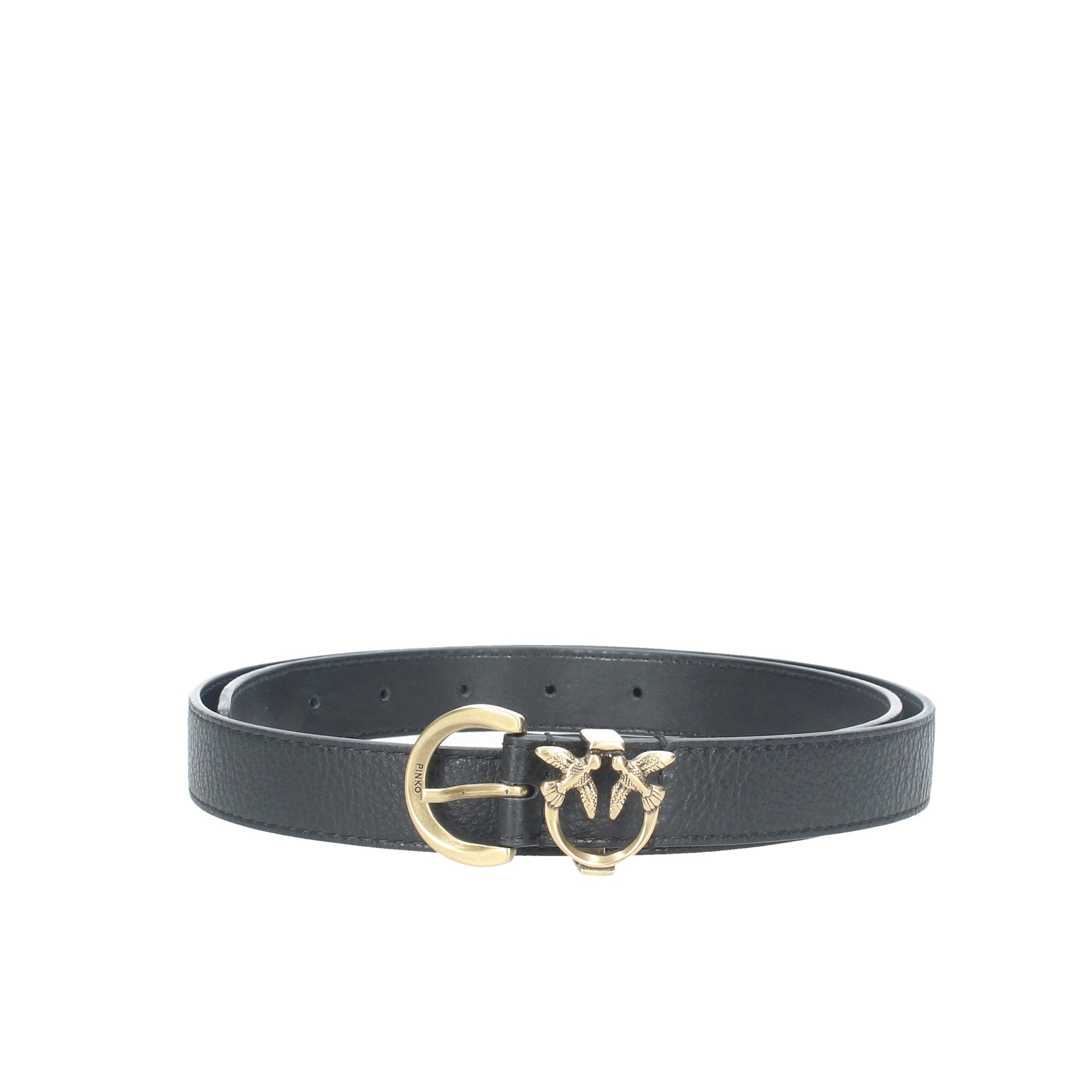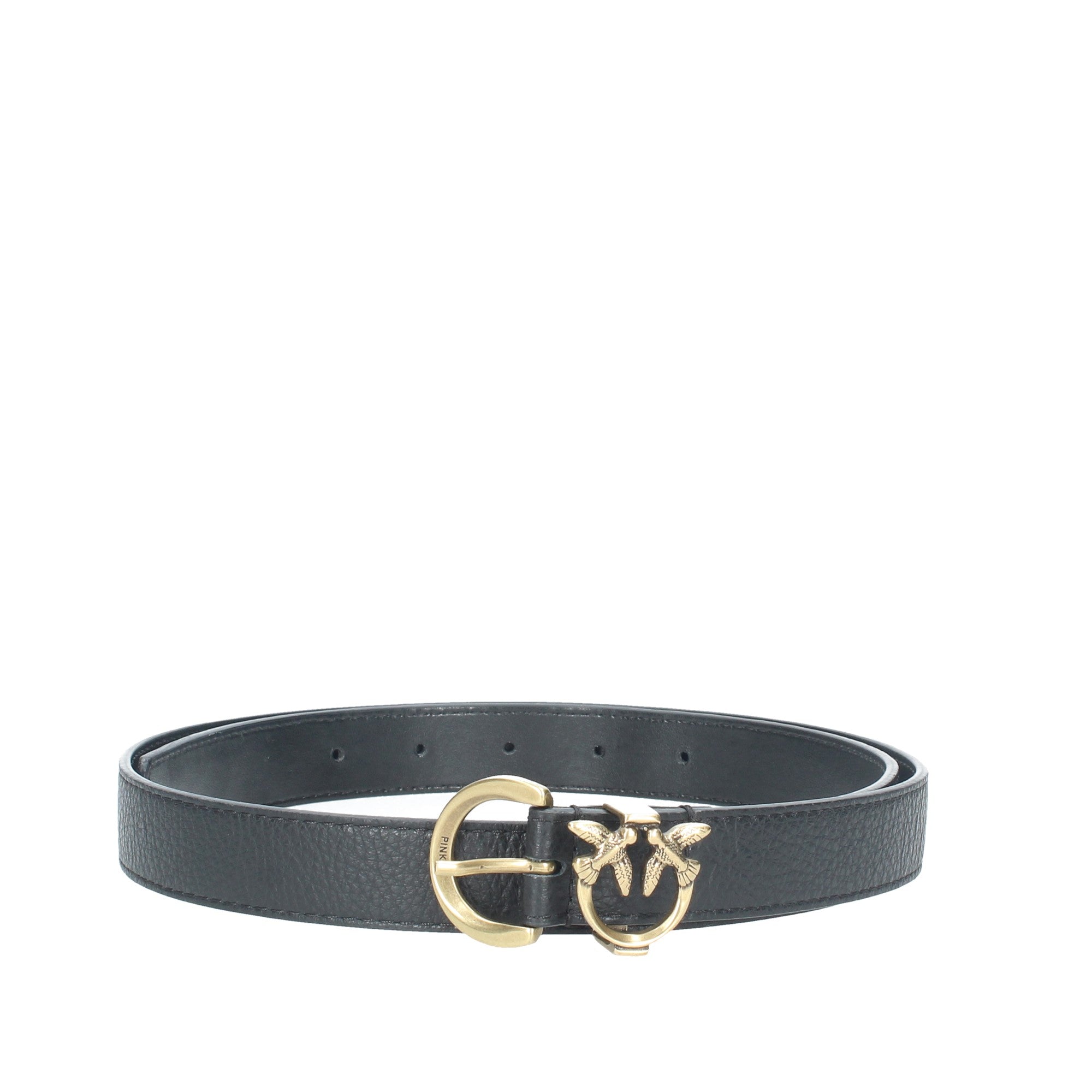 Cintura Tamboril H 2,5 Belt Vitello Bottalato 102820 donna PINKO, sottile, in pelle bottalato, con dettaglio metallico con placchetta Love Birds Diamond Cut e fibbia a mezzaluna, galvanica antique gold. Altezza 2,5 cm Pelle di vitello