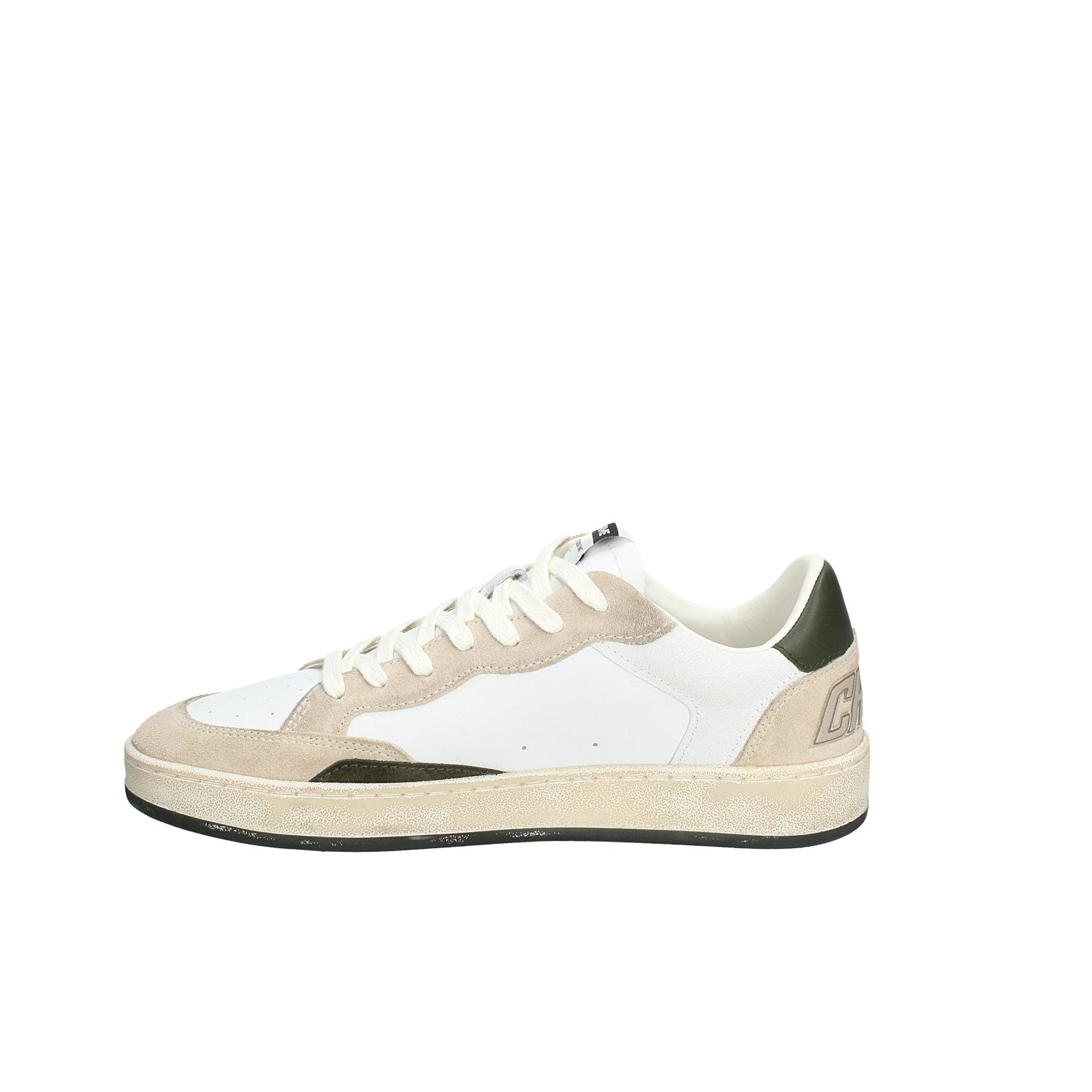 • Tomaia in pelle bianco, dettagli in suede tortora