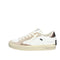 • Tomaia in pelle bianco, dettagli in suede beige e glitter oro