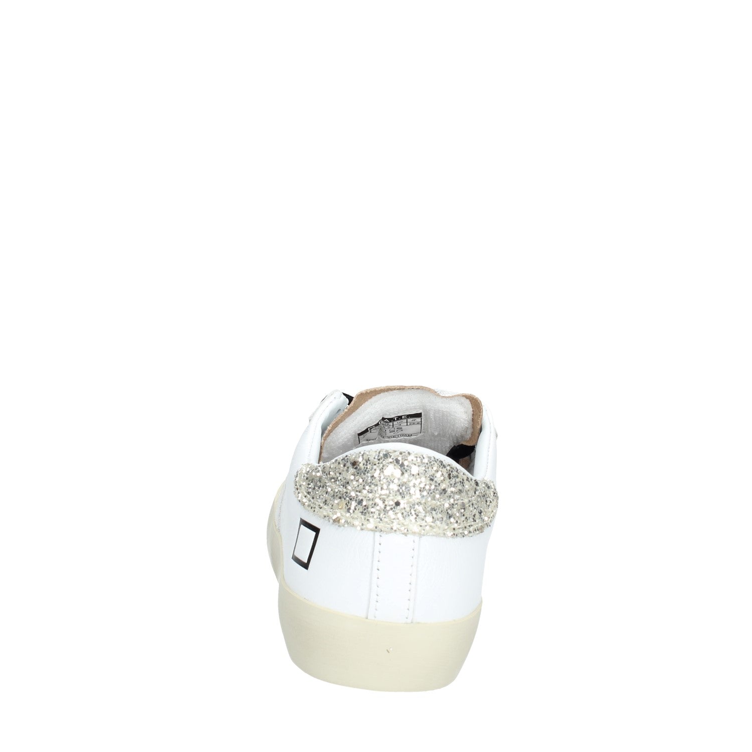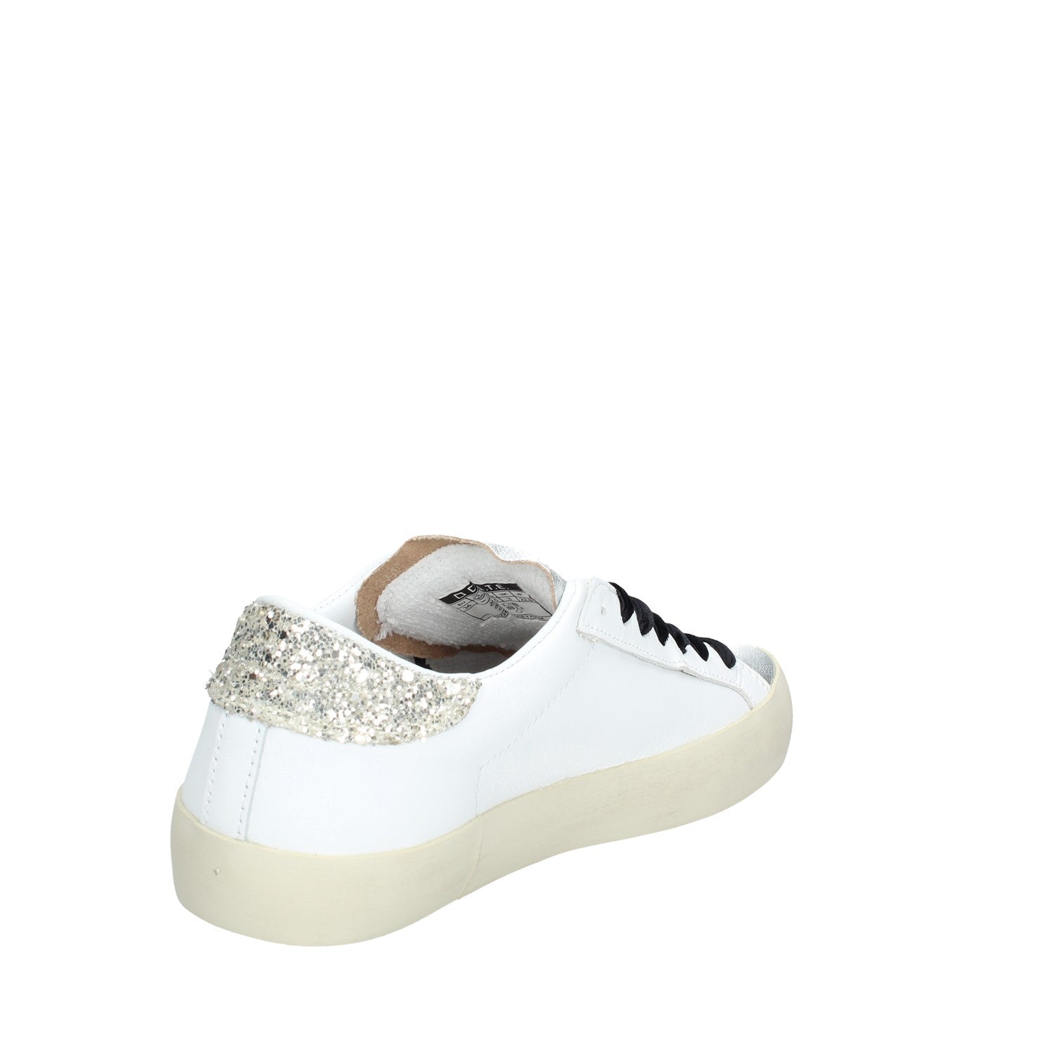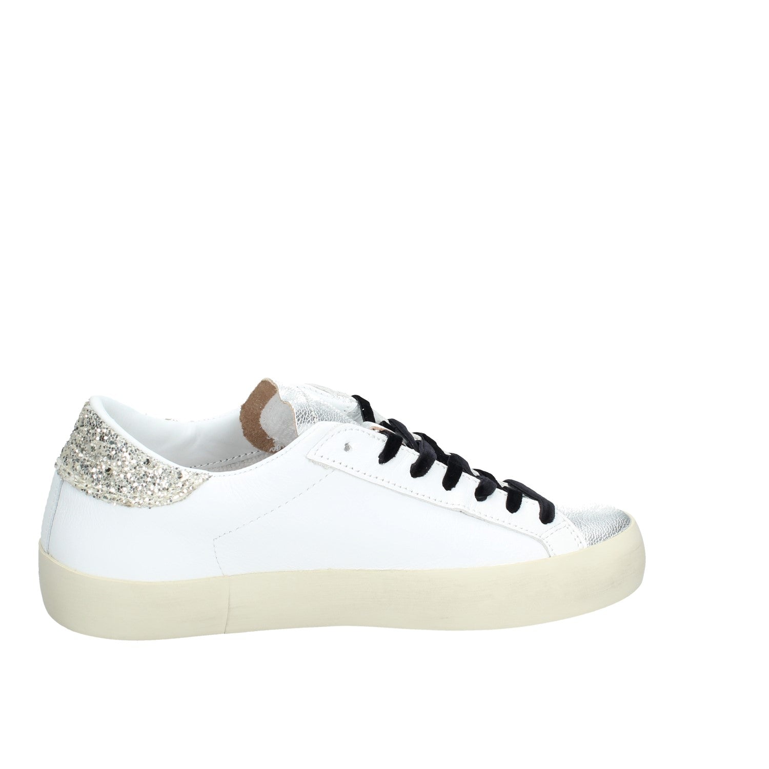 • Talloncino posteriore in glitter colore platino.