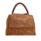 Dimensioni: Larghezza: 32 cm / Altezza: 24 cm / Profondità: 15 cm Tasche: taschino interno con zip Chiusura: patta con bottone magnetico Funzionalità: apertura a scomparsa sulla parte alta della patta, manico intrecciato scooby a spalla e tracolla regolabile removibile Dettagli: finiture palladio Materiale: suede con dettagli pelle liscia Made in Italy