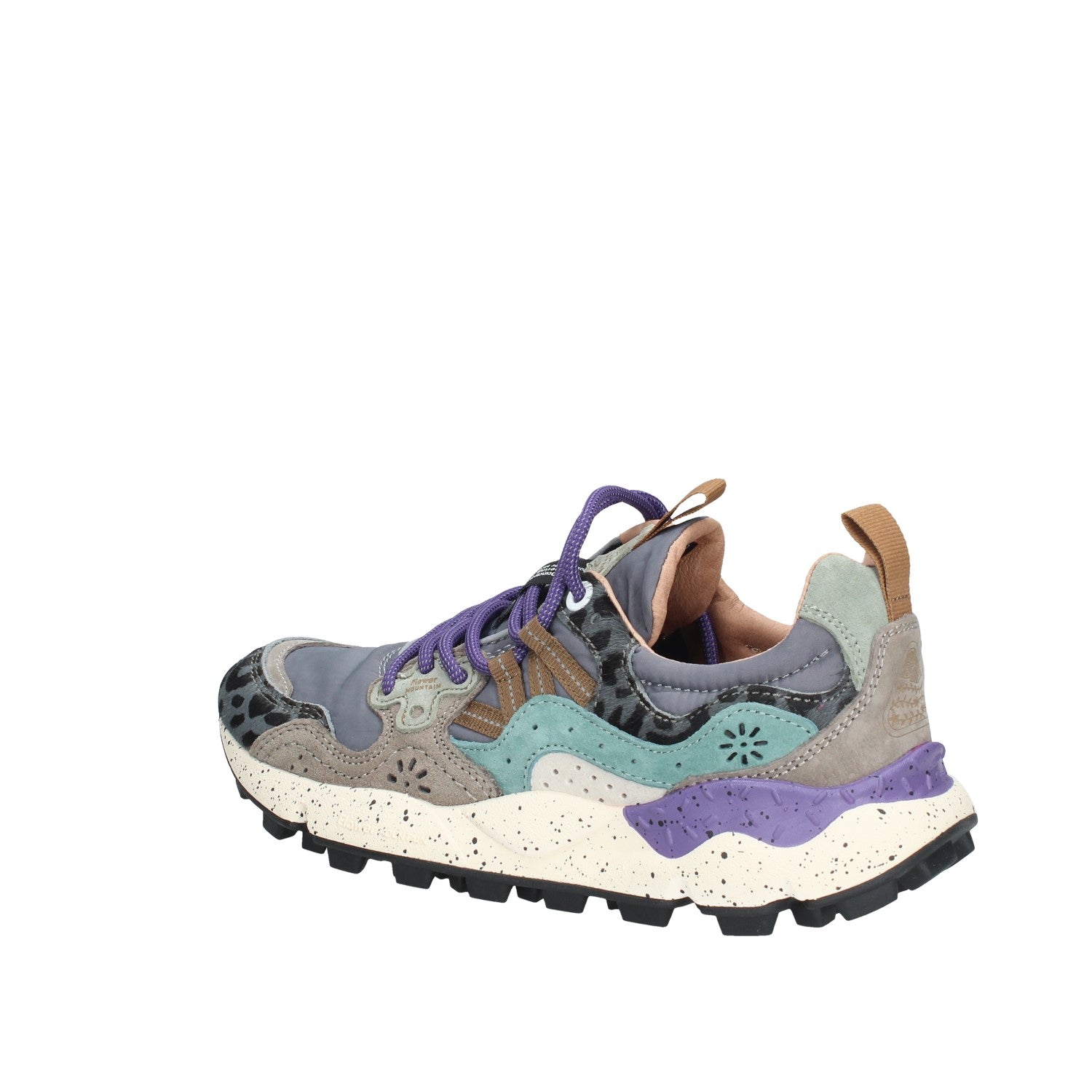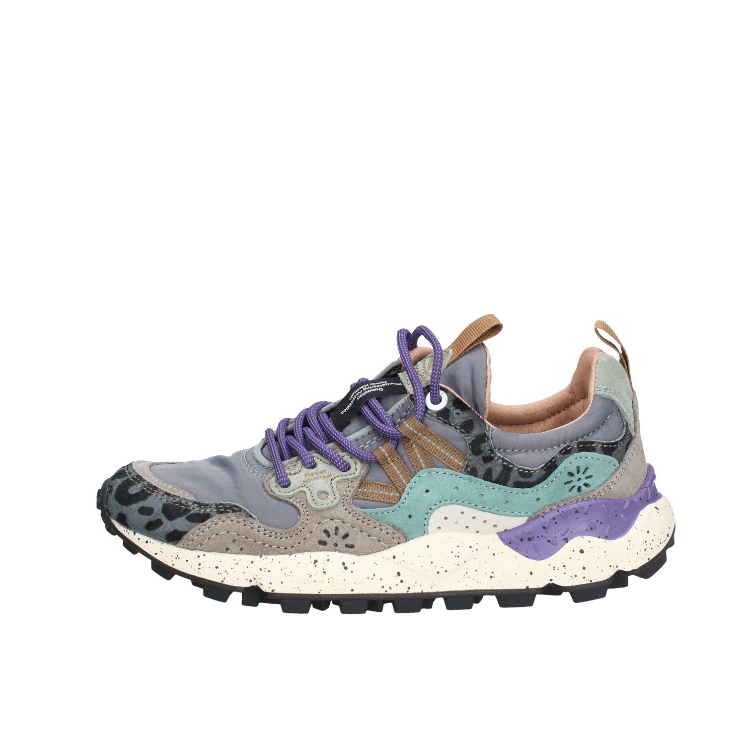 Sneaker in tessuto tecnico con inserti in suede multicolor. Occhielli rinforzati e lacci trek. Soletta interna in sughero naturale antibatterico, fondo in gomma ultra leggera con battistrada dentellato.