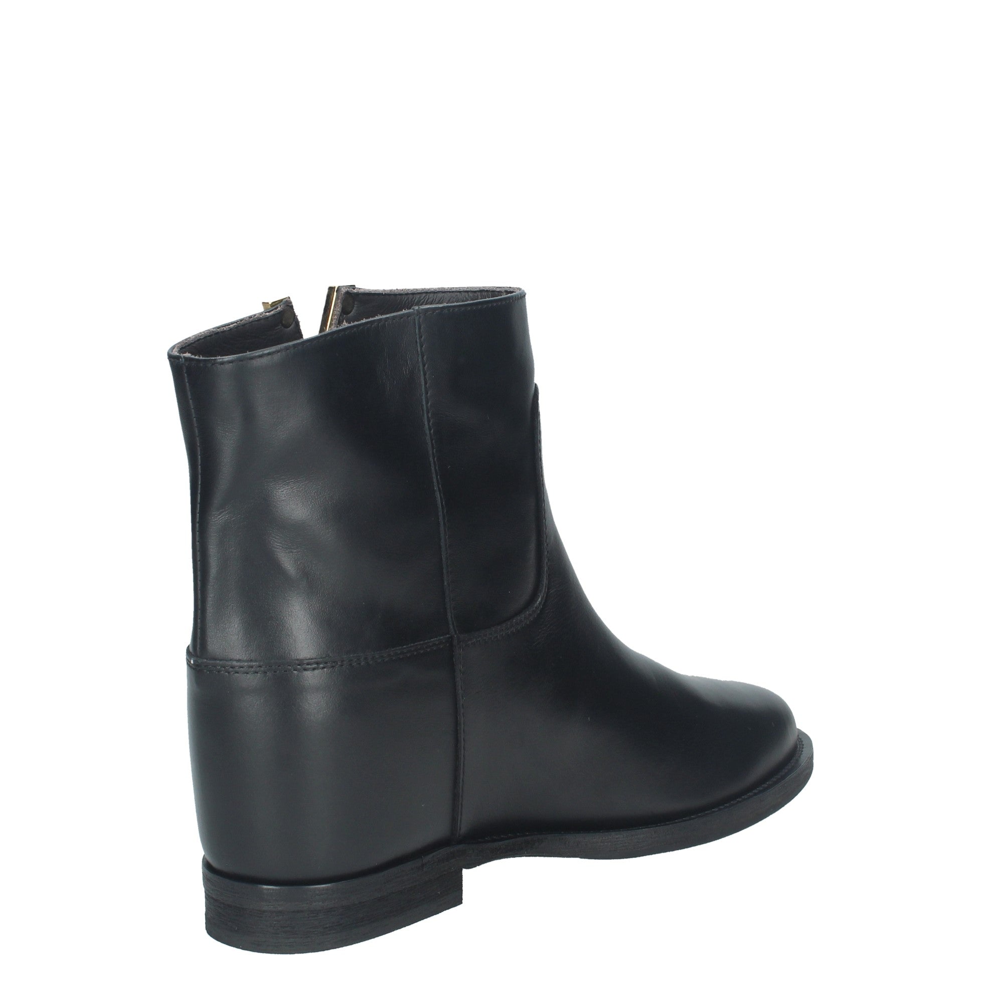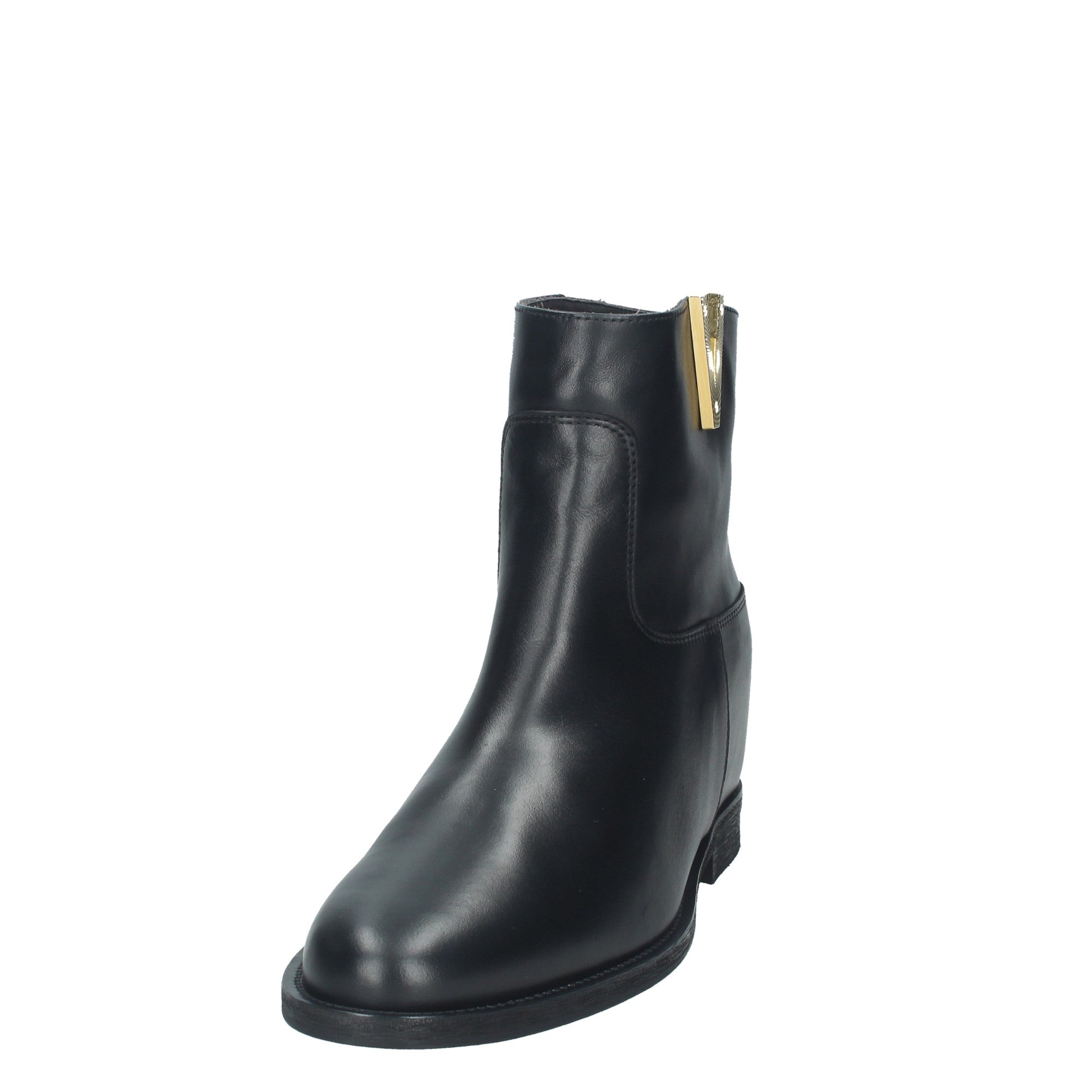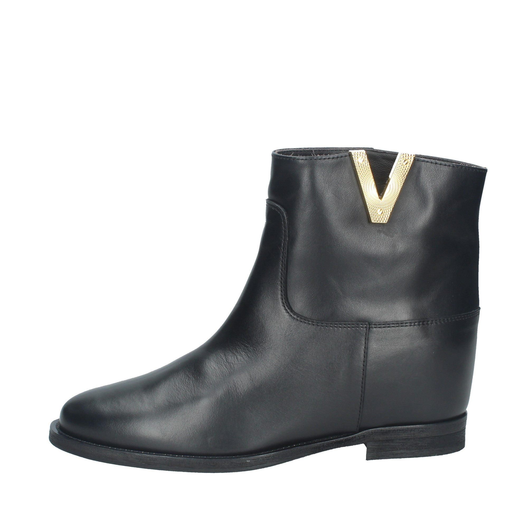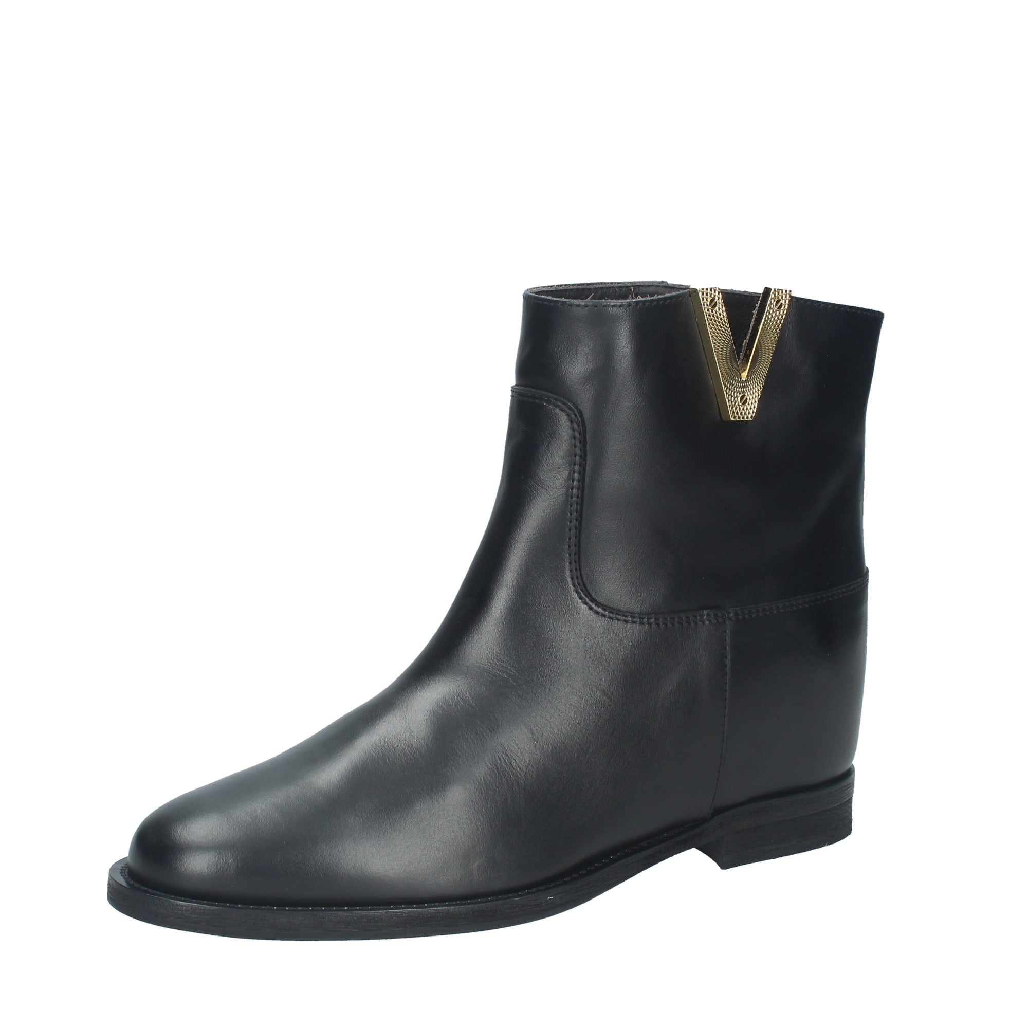 Stivaletto interna di 5 cm è realizzato artigianalmente in morbida pelle di vitello ed è caratterizzato dall'accessorio in metallo a forma di "V" in metall gold. Prodotto in Italia con materiali selezionati e lavorazioni di pregio, questo stivaletto presenta una fodera in morbida pelle di vitello, soletta interna in cuoio e suola cuoio con gomma antiscivolo.