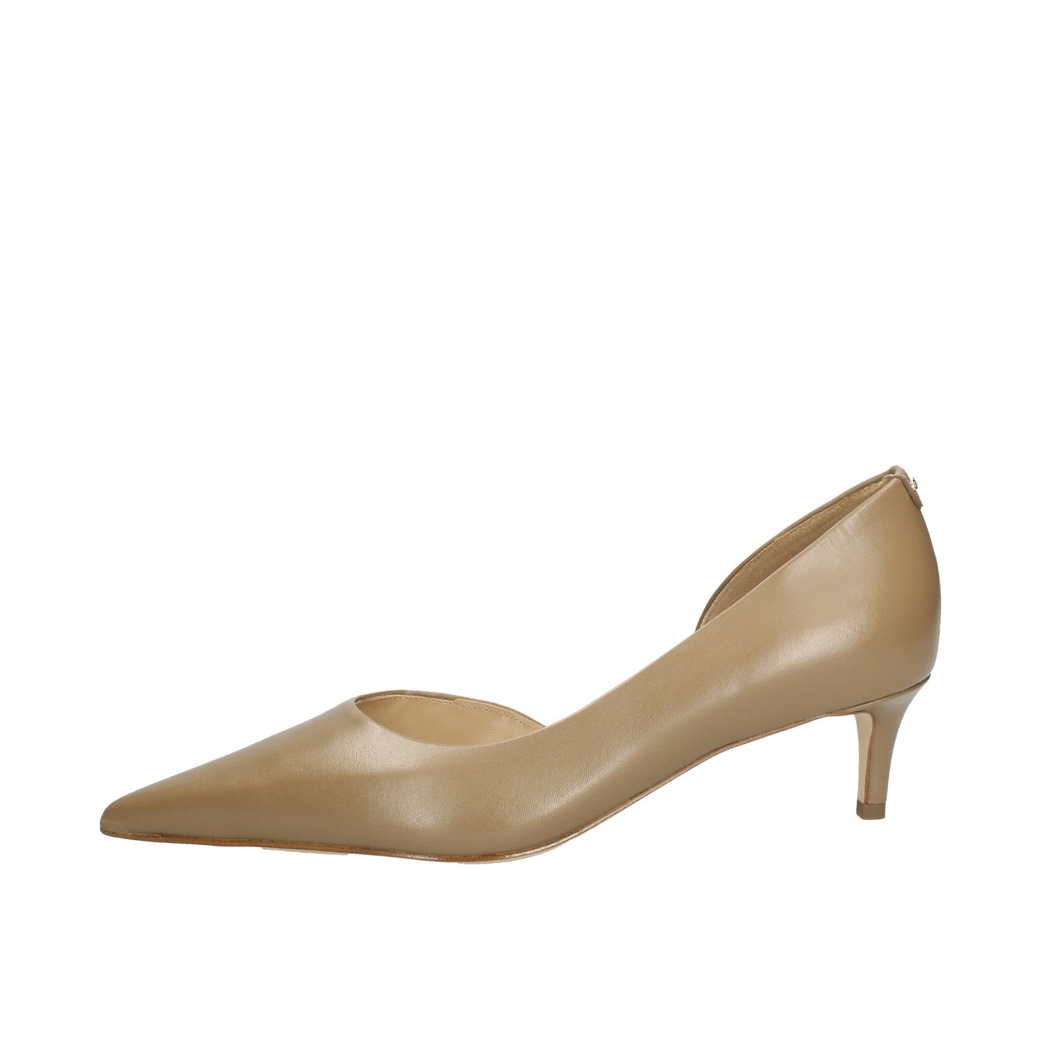 Eleganza discreta e proporzioni bilanciate definiscono la Michael Kors “Elyse Kitten Pump”: una décolleté in pelle a punta con scollo laterale interno che alleggerisce la silhouette e dona slancio al piede. Il tacco kitten da 45 mm assicura comfort per l’intera giornata senza rinunciare a un profilo femminile e raffinato. Interni curati in pelle e suola in gomma completano una costruzione affidabile, pensata per passare con naturalezza dall’ufficio agli impegni serali.