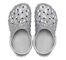 Il design geometrico sagomato, completato con finitura iridescente, garantisce quel tocco di stile in più al nostro iconico sabot. Queste caratteristiche esclusive ti permetteranno di dare sfogo al tuo spirito creativo e, grazie alla struttura in leggera schiuma Croslite™, questo sabot è anche leggero e facile da indossare. Il comfort ha finalmente incontrato la personalità!
