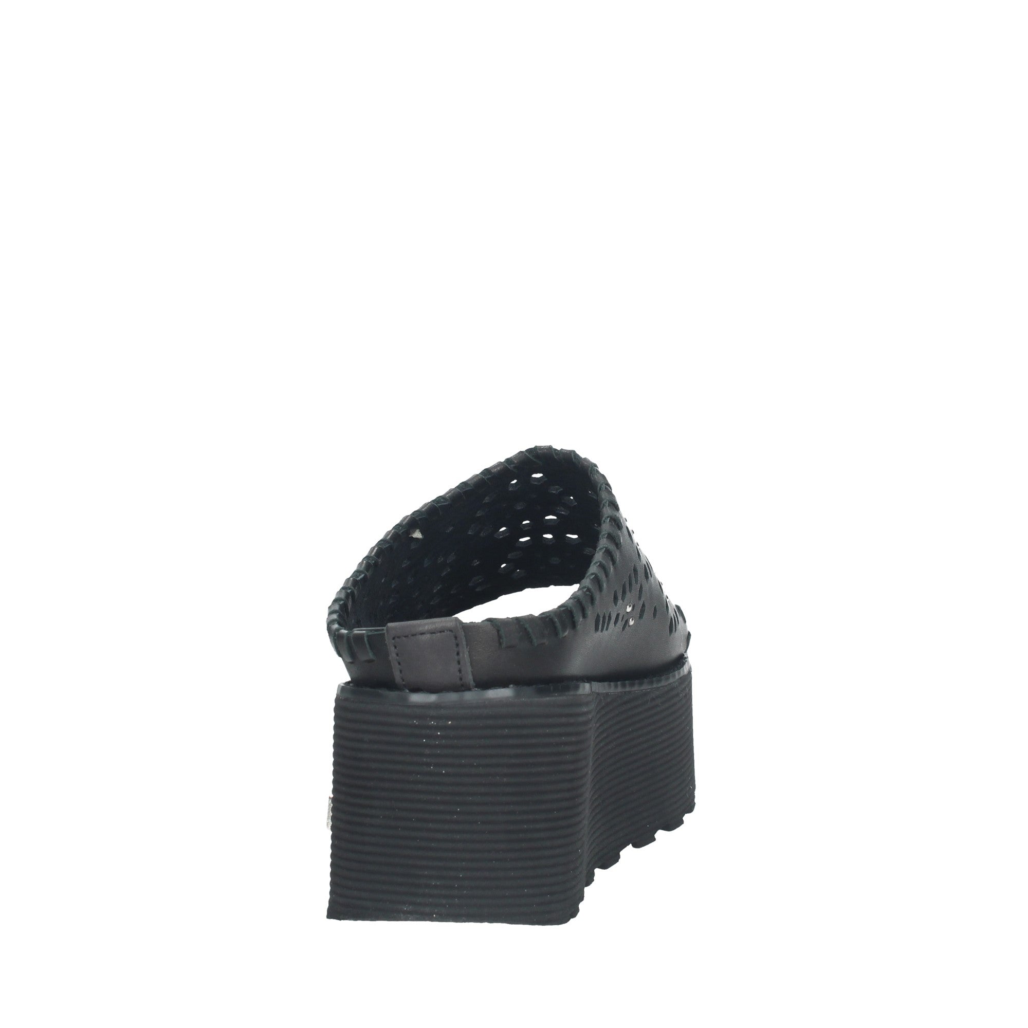 Vero must di questa stagione, i sandali firmati Cult poggiano su un comodo platform e assicurati da una maxi fascia in pelle nera. Contemporanei e minimali, saranno un successo assicurato con shorts e bluse colorate.