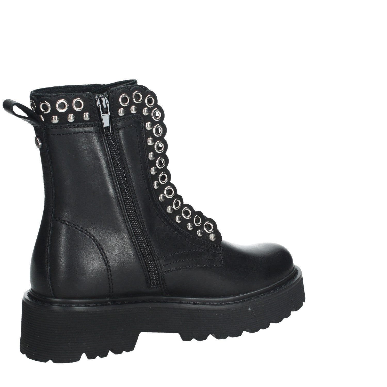 Anfibio femminile, con tomaia in pelle e occhielli metallici disposti in doppia fila. La suola carrarmato lo rende adatto anche per ambienti outdoor senza dimenticare lo stile glam-rock e più romantico del modello.