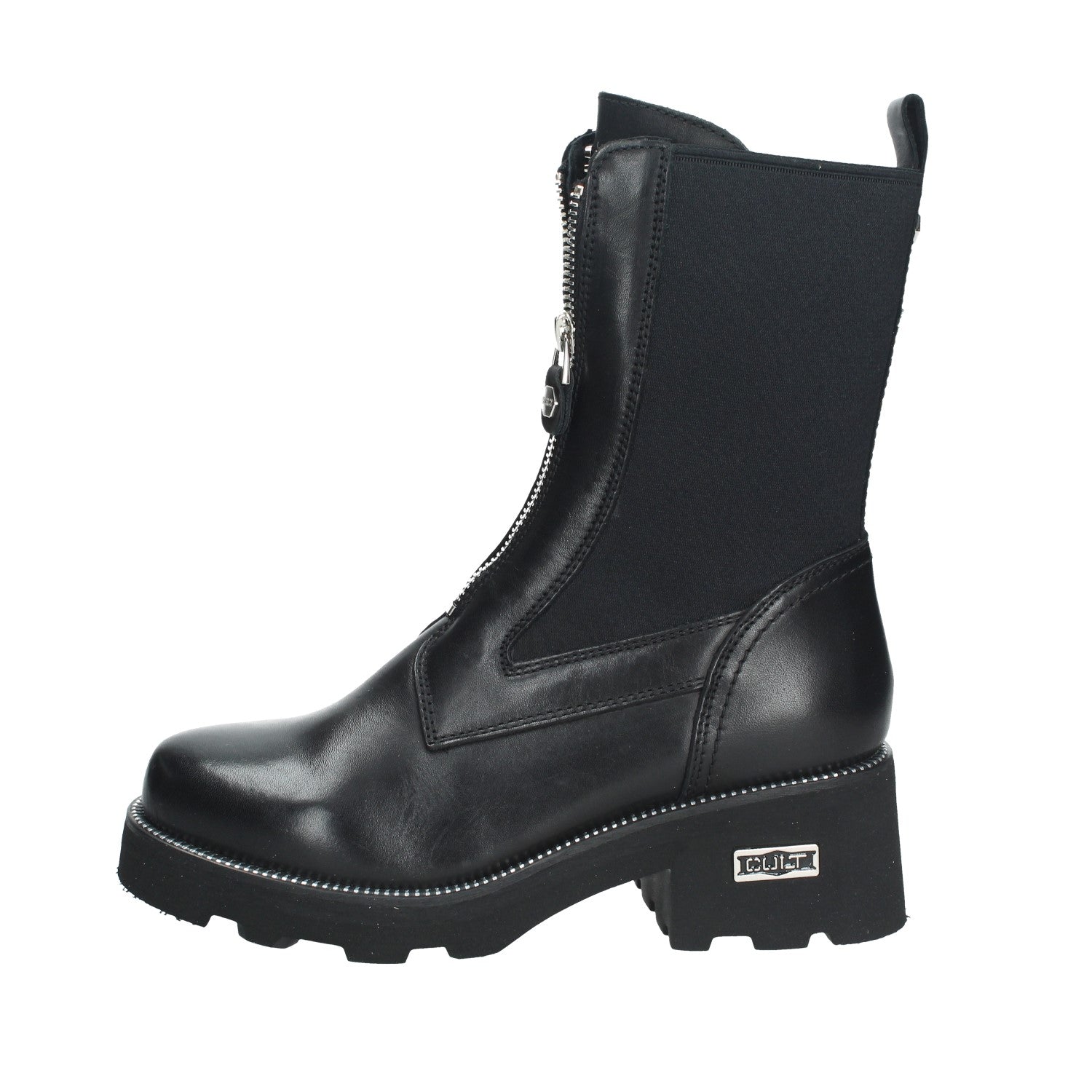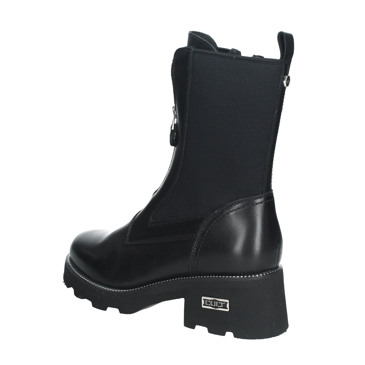 Utility luxe" è il concetto chiave dei nuovi stivaletti da donna firmati Cult. Realizzati in pelle nera, presentano degli inserti elasticizzati e sono attraversati da zip frontale con tira-lampo in pelle e zip laterale per una calzata veloce. Grazie alla suola in gomma con tacco a blocco di 5 cm, impreziosita dall'iconica targhetta metallica e da un guardolo con cerniera silver, darete una marcia in più a tutti i vostri outfit, day to night.