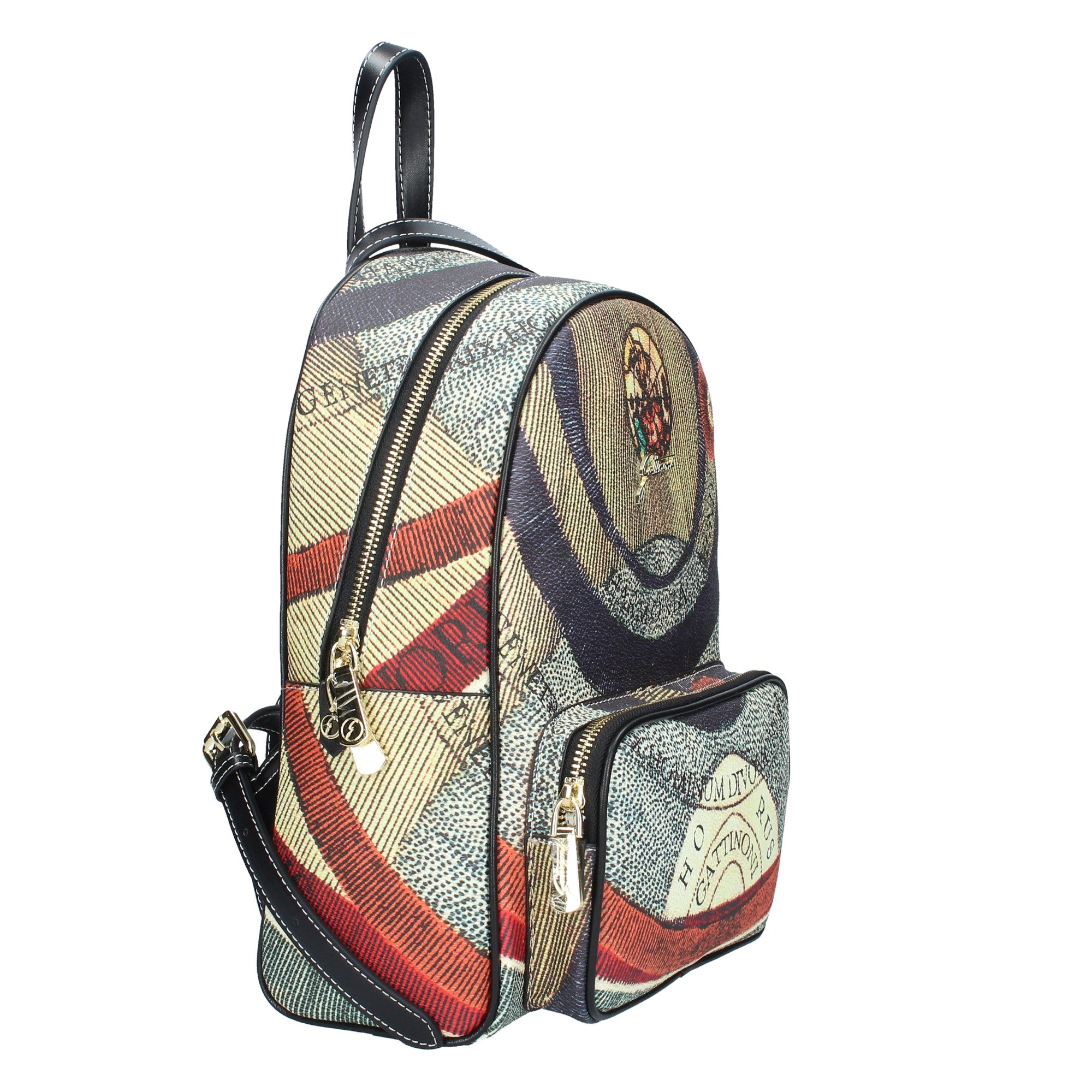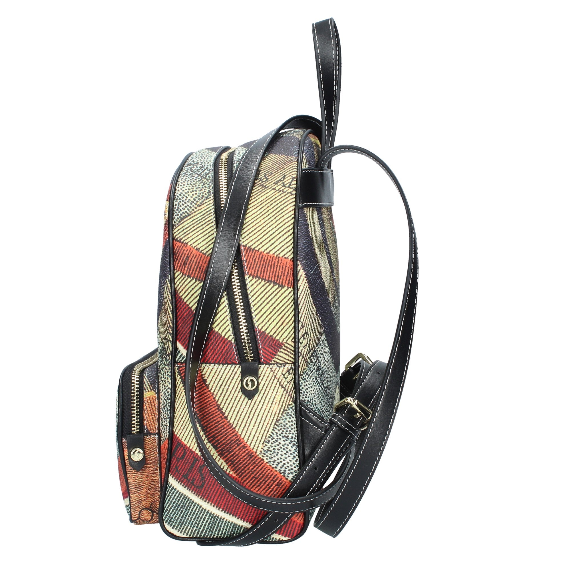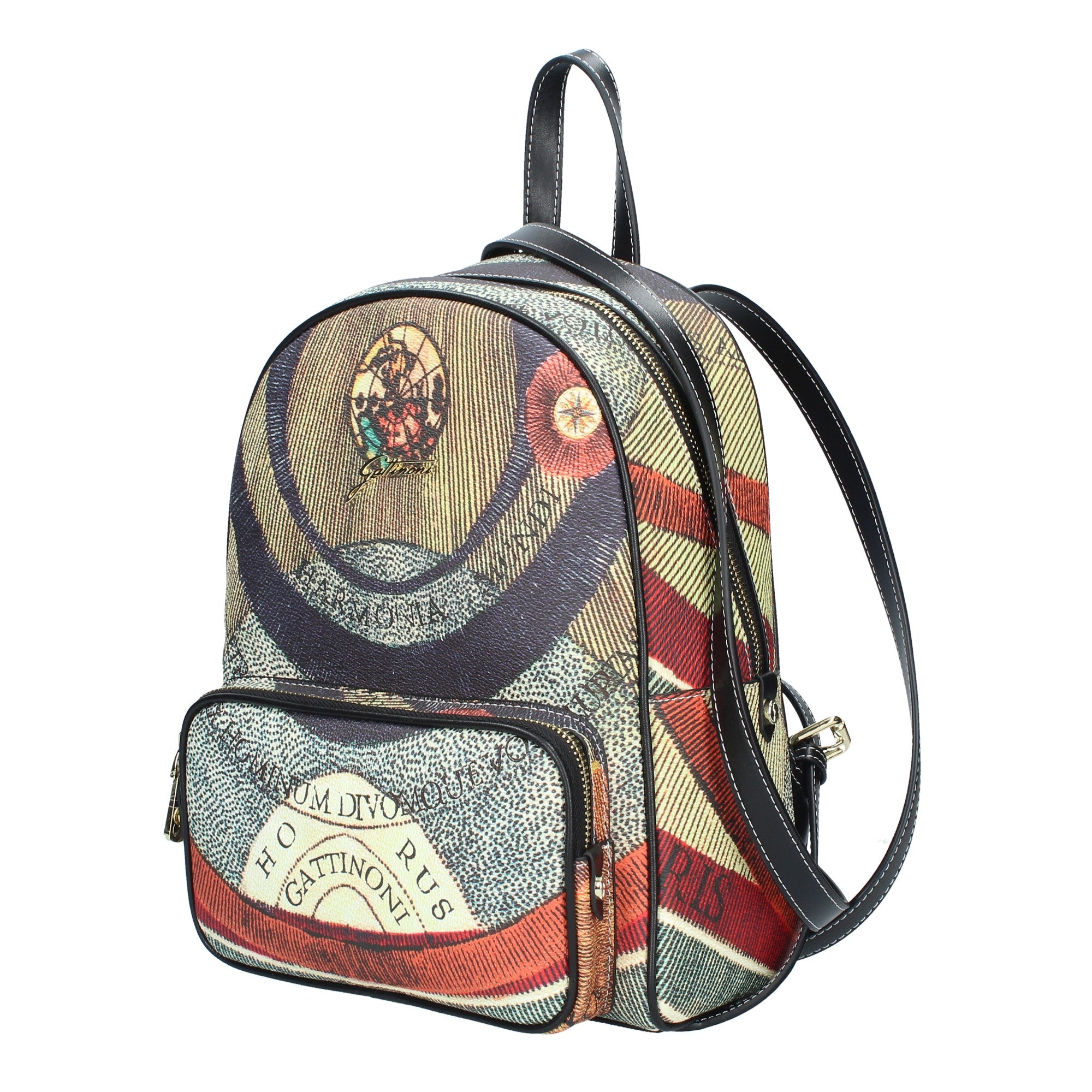 Zaino con stampa Planetarium, chiusura con zip. Manico e bretelle regolabili in nero. Logo Gattinoni in metallo nella parte frontale. Tasca frontale con zip. Finiture in pelle.